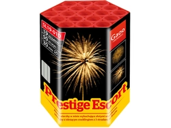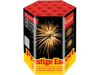 Dynamiczna wyrzutnia Prestige Escort od polskiego importera fajerwerków - GAOO. 19 strzałów z dużymi efektami o kalibrze 30mm / 1.2". Produkt posiada certyfikat CE F2. Czas działania ok. 35 sekund.