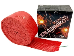 Długi karabinek petard hukowych K1000R - Celebration Cracker. Taśma petard składa się z 1000 sztuk, wybuchających w szybkim tempie jedna po drugiej.