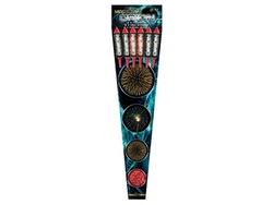 Zestaw Nautilus polskiego importera i producenta fajerwerków - JORGE. Zawiera 8 rakiet z mixem kolorowych efektów.