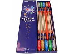 [b]PREMIUM[/b] Rakiety Sternraketen z oferty Funke. W opakowaniu znajduje się 10 sztuk. Rakiety posiadają różne kolorowe efekty.