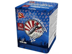 Little Boy to mała wyrzutnia z efektem tytanowego huku / titanium salute. Posiada 16 strzałów z ładunkami o kalibrze 20mm / 0.8".