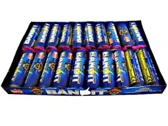 Petardy hukowe Bandit z oferty czeskiej firmy Tarra - producenta i importera fajerwerków. Cena za całe opakowanie - 20 sztuk petard FB002B.