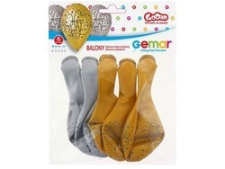 Balony Premium "Happy New Year", złote i srebrne, 12" / 6 szt. GS110/NY1