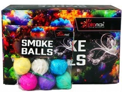 Kulki dymne PXG108 z firmy Piromax, Opakowanie zawiera 72 sztuki w różnych kolorach. Efekt: biały dym, żółty dym, niebieski dym, zielony dym, czerwony dym, fioletowy dym. Produkt posiada europejski certyfikat bezpieczeństwa T1