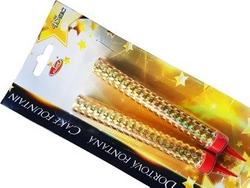Zestaw dwóch fontann tortowych 12cm z efektem złotego płomienia. Produkt z najnowszej oferty czeskiej firmy Klásek. Czas działania wynosi ok. 45 sekund/sztuka.