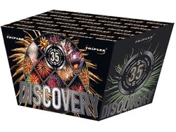 Wyrzutnia kątowa Discovery - symbol produktu TXB639. Posiada 35 strzałów (5 serii x 7 strzałów) z efektem złoto-niebieskiej miny przechodzącej w brokatowe korony.