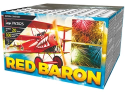 Popularna wyrzutnia Red Baron - symbol produktu JW2025. Zawiera aż 100 strzałów z mixem kolorowych efektów. Czas działania wynosi ok. 45 sekund.