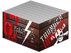 Wyrzutnia Thunder Hunter z dużą ilością złotych efektów(złote palmy oraz brokatowe złote korony). TB185 zawiera 67 strzałów wystrzeliwanych prosto i pod kątem. Czas działania wynosi ok. 50 sekund.