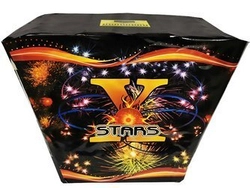 Kątowa wyrzutnia X-Stars polskiej marki fajerwerków - Triplex. Produkt posiada 25 strzałów (5 serii po 5 strzałów). Czas działania wynosi ok. 20 sekund.
