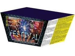 Wyrzutnia Festival P7737. Ciekawa bateria kątowa z firmy Kometa. Posiada 80 strzałów o kalibrze 1". Produkt posiada certyfikat bezpieczeństwa w kat. CE F3