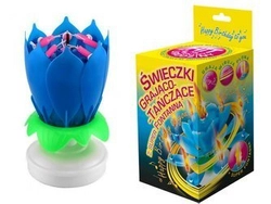 Grające świeczki; najlepsze na urodzinowe przyjęcia; płoną, wirują i grają melodię [b]"happy birthday"[/b] - pozytywka. Kolor niebieski.