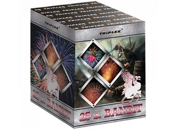 Dynamiczna wyrzutnia Bandit z kolorowymi efektami wzmocnionymi cracklingiem (trzeszczącymi iskrami). Produkt posiada 25 strzałów. Czas strzelania wynosi ok. 40 sekund.
