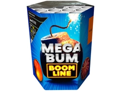 Mega Bum to kolejna wyrzutnia z nowej serii "BOOM LINE" od producenta JORGE Fajerwerki. 19 strzałów z efektami w dużym kalibrze 1.2". Czas działania wynosi ok. 30 sekund.