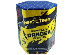 Potężna wyrzutnia Danger polskiej marki fajerwerków - Kometa/Magic Time. P7796 zawiera 19 ładunków z największym dostępnym kalibrem na rynku tj. 2". Gwarancja ogromnych efektów na niebie!.