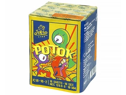 Mała ale zarazem bardzo dynamiczna wyrzutnia Potok od Iskra by Funke. Posiada 16 strzałów z kolorowymi efektami. Czas strzelania wynosi ok. 20 sekund.