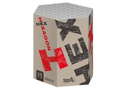 Widowiskowa wyrzutnia HEX od Tropica. Posiada 19 strzałów o kalibrze 1.2" Czas efektu: ok. 20 sekund. Kat. CE F2 Nad głowami zobaczmy: bukiet z zielonym brokatem. Kwiatowe komety przechodzące w korony z czerwonym, zielonym i białym migotaniem.